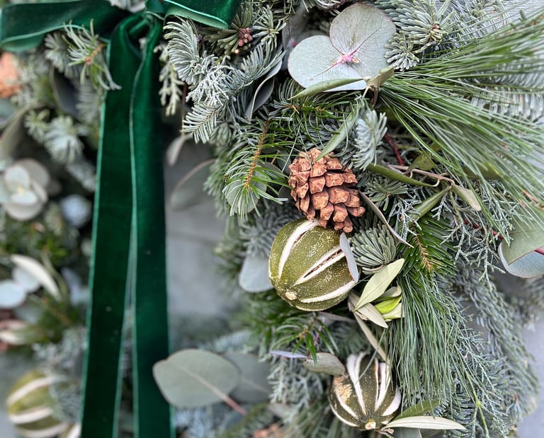 We will guide you through every step of the way to make your Christmas Wreath look spectacular. Using fresh seasonal foliages and materials, we provide everything that you need including the tools.